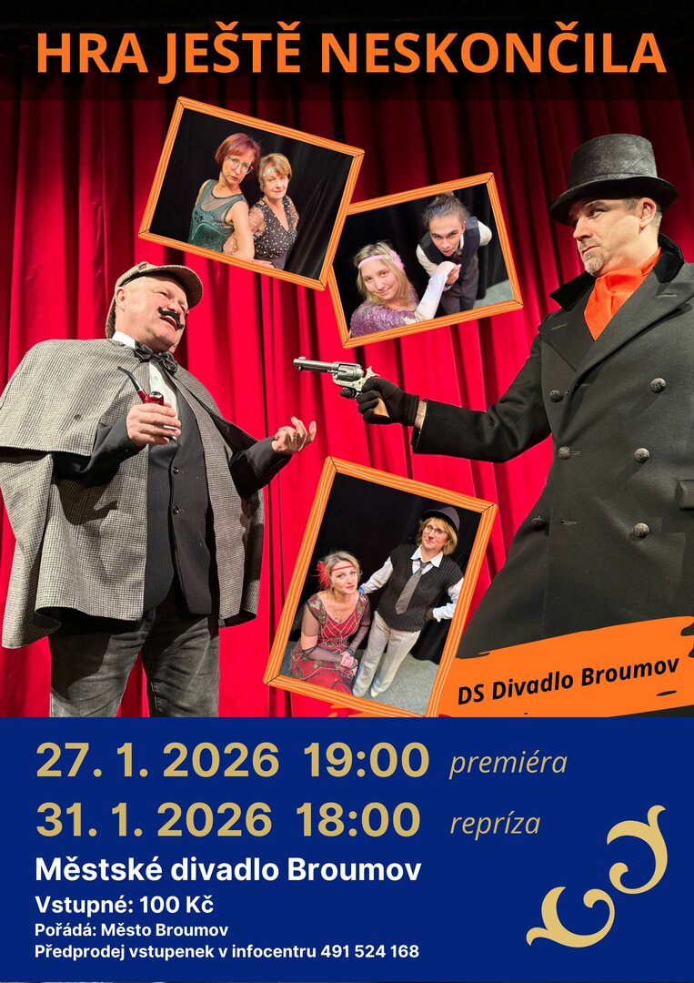 DS Divadlo Broumov a Město Broumov zvou srdečně do Městského divadla v Broumově na reprízu hry Hra ještě neskončila.