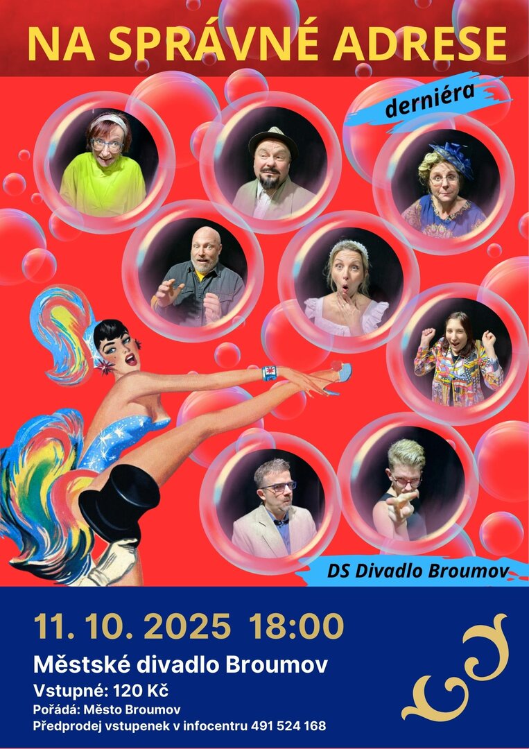 Město Broumov zve srdečně do divadla na derniéru představení DS Divadla Broumov Na správné adrese.