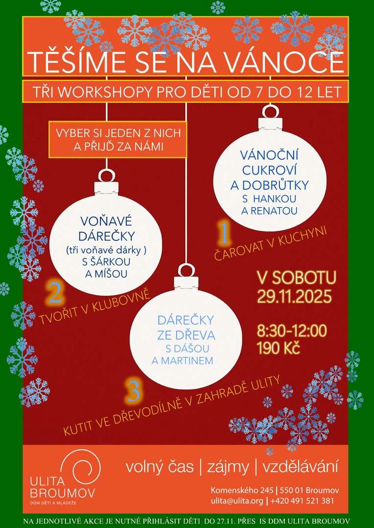 Vyberte si jednu ze tří vánočních tvořivých dílen, které pro vás připravila Ulita Broumov.